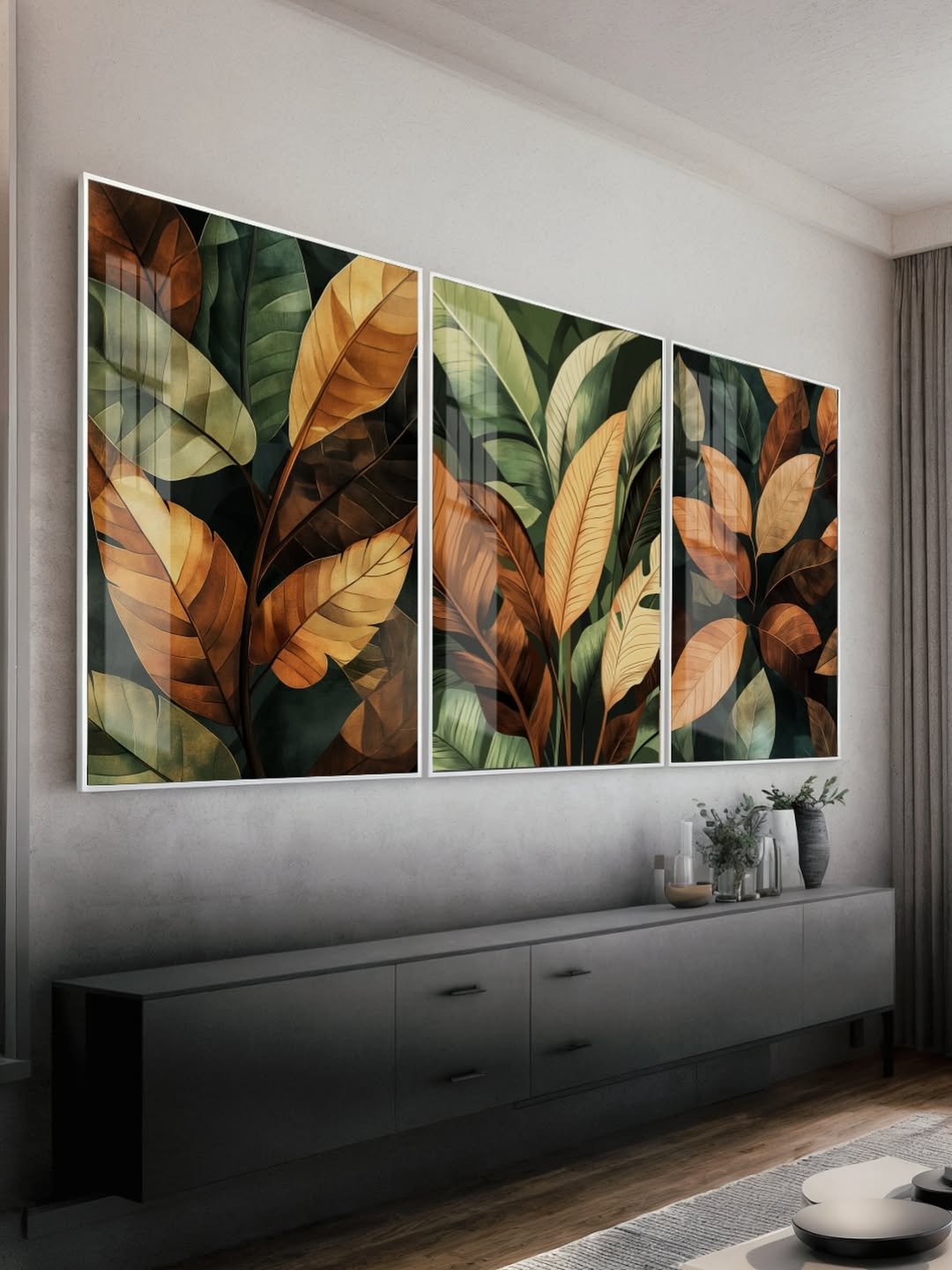 Esse trio de quadros traz a beleza orgânica e o movimento da natureza para dentro do seu ambiente. A obra é uma exploração visual de formas fluidas e texturizadas, com ondas que parecem dançar na parede. A paleta de cores, com tons de marrom, bege e cinza, cria uma atmosfera de calma e sofisticação. É a peça ideal para quem busca uma decoração que é ao mesmo tempo abstrata, elegante e inspiradora.