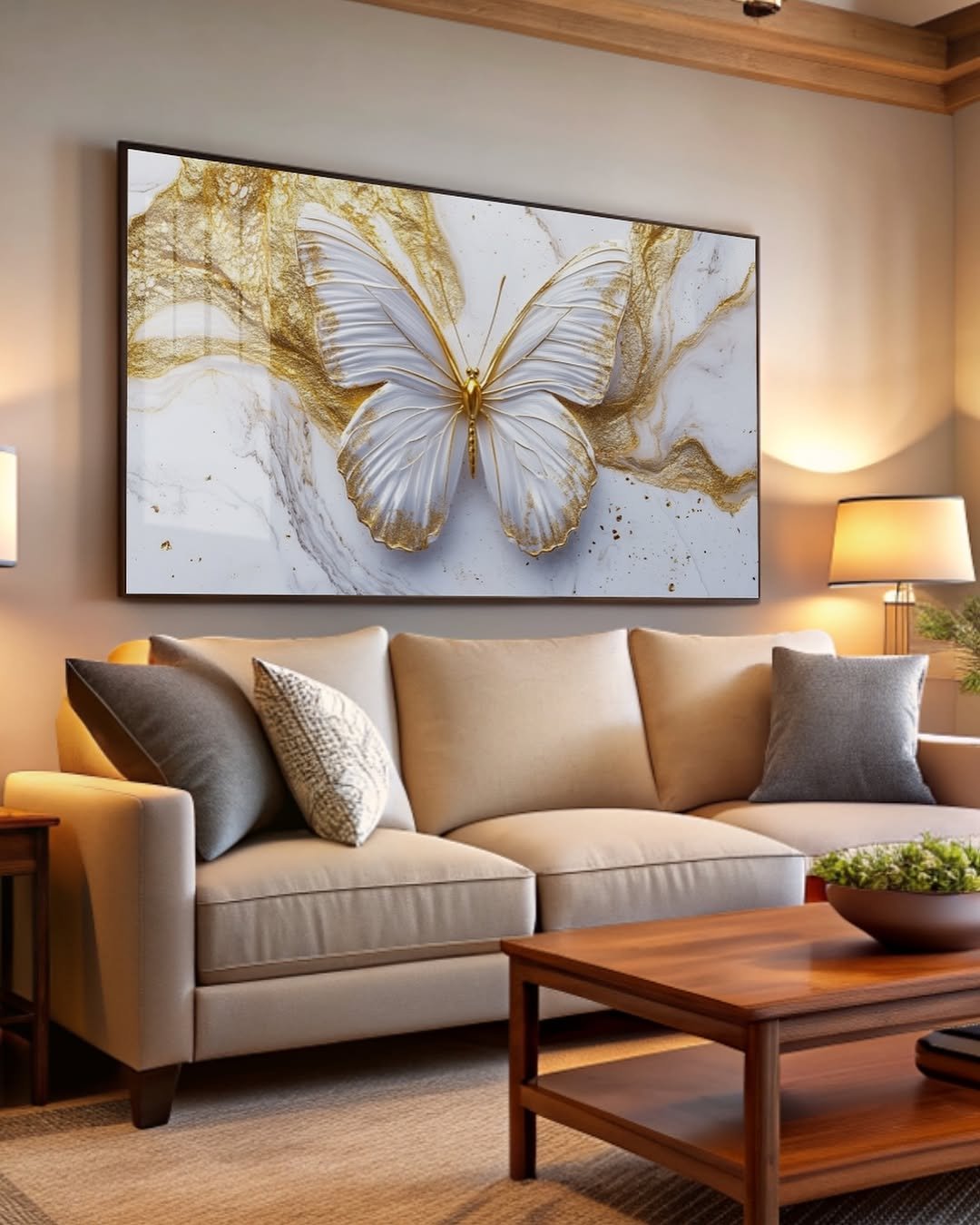 O Quadro Borboleta Dourada em Mármore é uma peça sofisticada que combina delicadeza e imponência em um único design. A borboleta em relevo traz sensação de leveza e transformação, enquanto os detalhes em dourado contrastam com o fundo em estilo mármore, transmitindo luxo e modernidade.